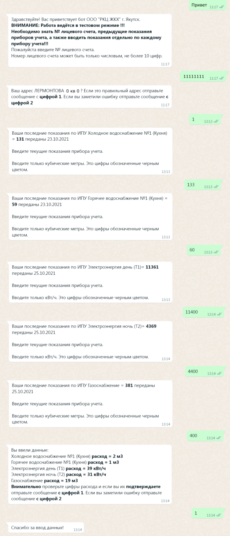 БОТ ООО «РКЦ ЖКХ» г. Якутск это специальная программа предназначенная для внесения ежемесячных показаний индивидуальных приборов учета коммунальных услуг с помощью приложения WhatsApp.